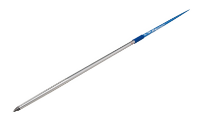 特色: 重心集中於握把,提升選手對標槍的掌握度 尾端縮小設計,延長飛行距離