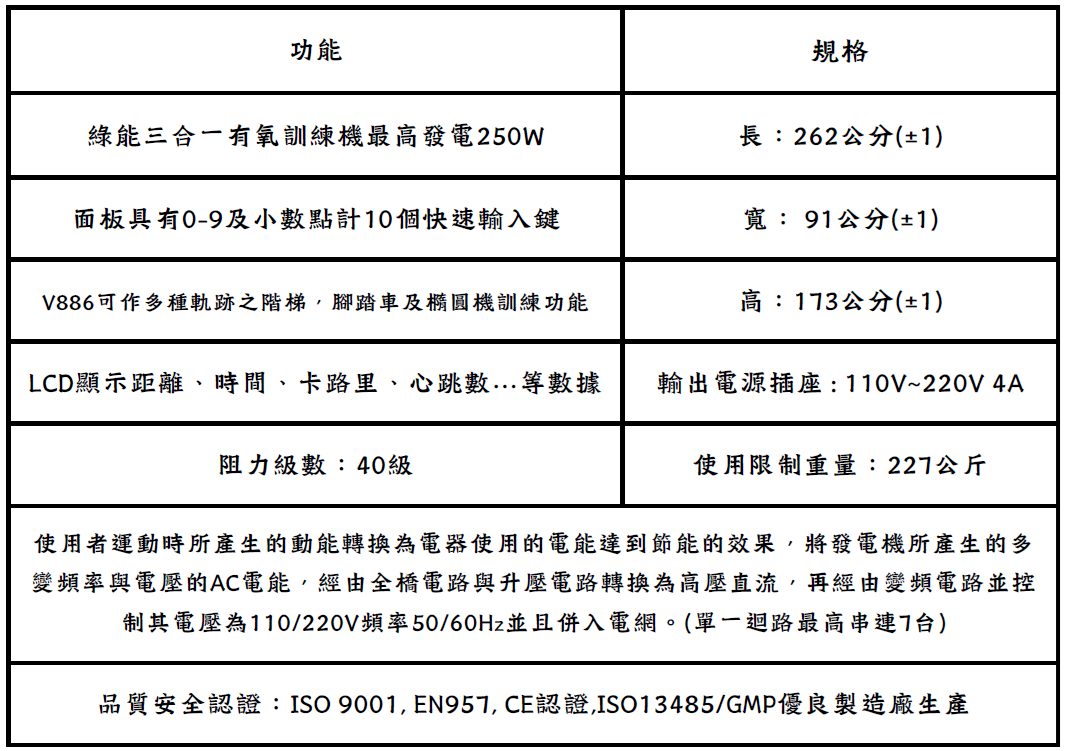 綠能系列三合一有氧訓練機